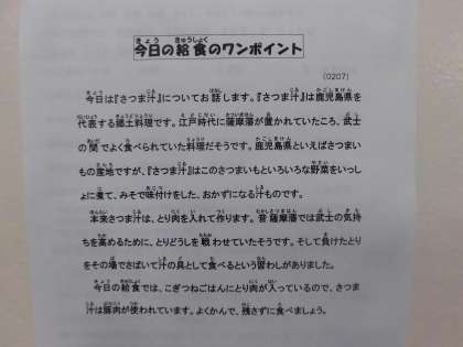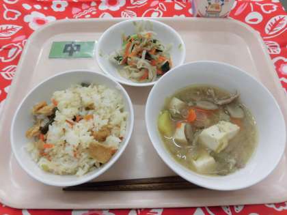【献立】こぎつねごはん・おひたし・さつま汁・牛乳
