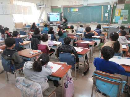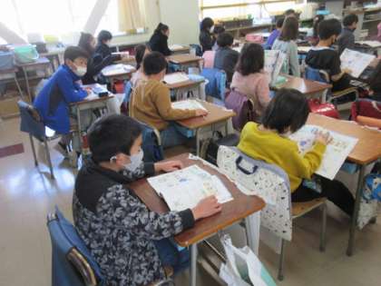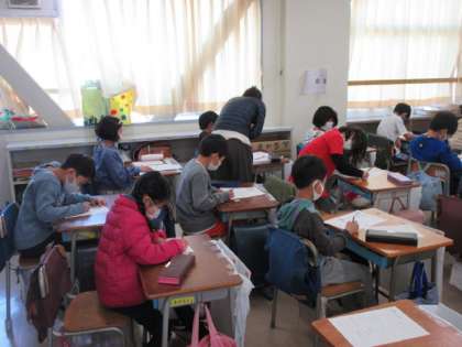 4けたの数まで学習が広がっています。それぞれのクラスの授業の様子です。