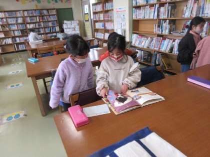 図書室で読みたい本を選び、落ち着いて読書しています。