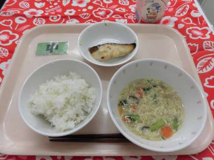 【献立】麦ごはん・魚の西京焼き・きにこ入りかきたま汁・牛乳