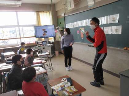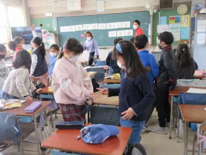 学習の一番のねらいは英語を使った子どもたちのコミュニケーションです。楽しく活動しています。