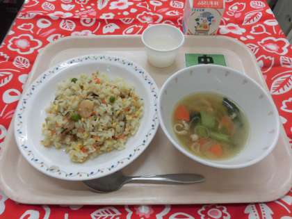 【献立】チャーハン・とり肉と青菜のスープ・ホワイトゼリー・牛乳