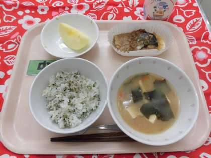 【献立】ごはん・さばのソース煮・みそ汁・りんご・牛乳