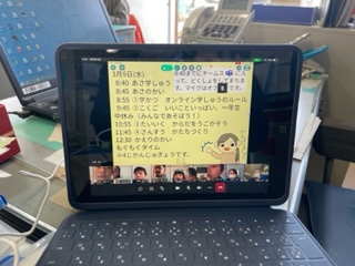 今日から学級閉鎖のクラスのオンライン学習の様子です。基本的な使い方を確認しています。