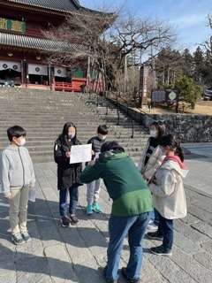 集会委員の6年生が輪王寺前から日光クイズをzoomでオンライン配信。ホストは学校にいる5年生の集会委員。企画は大成功!