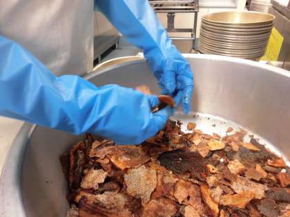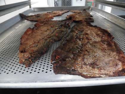 鮭はフィーレを使ったため、皮が残りました。これを焼いて皮せんべいを作りました。