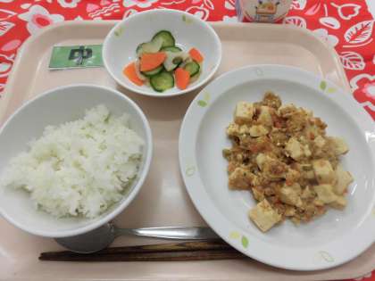 【献立】ごはん・麻婆豆腐・シャキシャキ野菜・牛乳