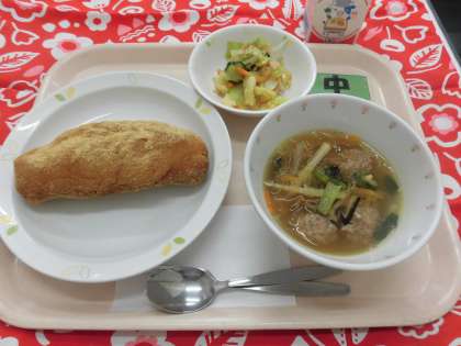 【献立】あげパン・肉団子入り春雨スープ・野菜の中華サラダ・牛乳