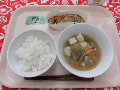 【献立】ごはん・魚のみそマヨネーズ焼き・けんちん汁・牛乳
