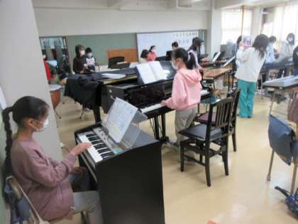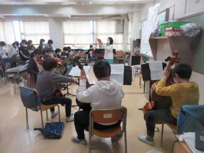 卒業式の入退場曲「威風堂々」の合奏を録音しています。見事な演奏です。