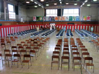体育館も教室も新1年生を迎える準備ができました。明日は始業式と入学式です。子どもたちの登校を心待ちにしています。