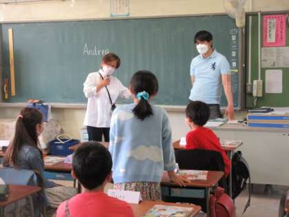 5,6年生の英語はアンドレア先生に教えていただきます。今日は英語で好きなものを質問しあっていました。英語でのコミュニケーションを大切にしています。