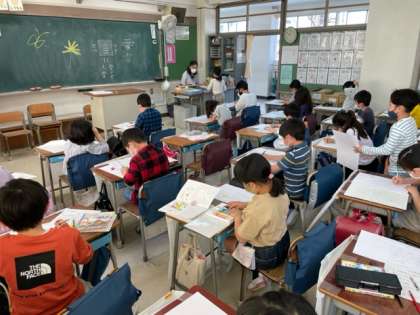 こちらも同じ学習です。詩を写し終わったら、絵を描きます。
