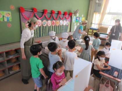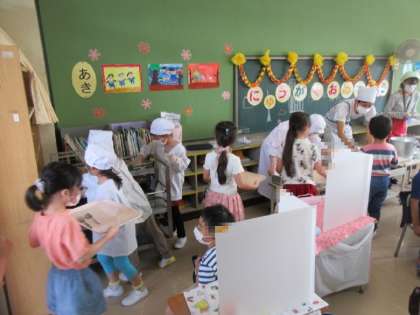1年生が楽しみにしていた給食が今日から始まりました。1,2組の様子です。
