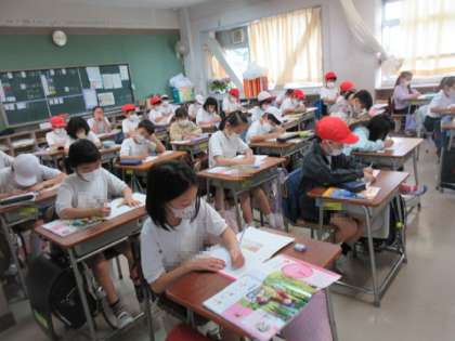 3年生になると理科と社会の授業が始まります。先生が大型テレビを使ってていねいに理科の授業をしていました。
