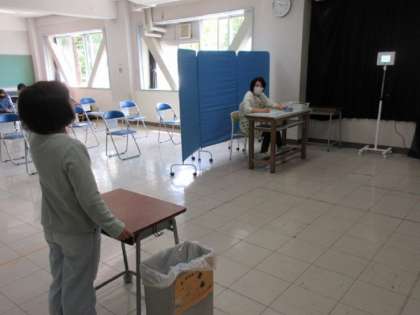 4月は様々な検査をします。養護教諭が視力検査をしています。
