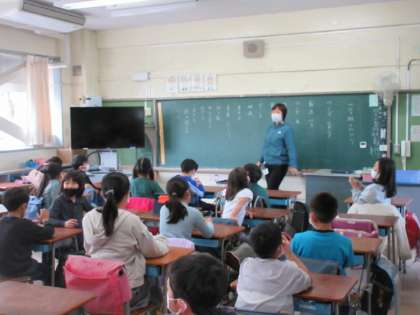 クラスの係を決めています。前のクラスの様子をそれぞれ出し合いながら話し合っています。