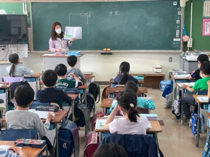 点や画の組み立て。書き順の決まりを覚えて、正しい書き順で書く練習をしています。