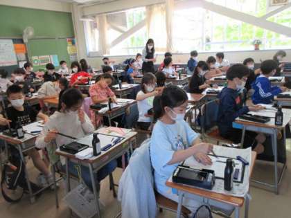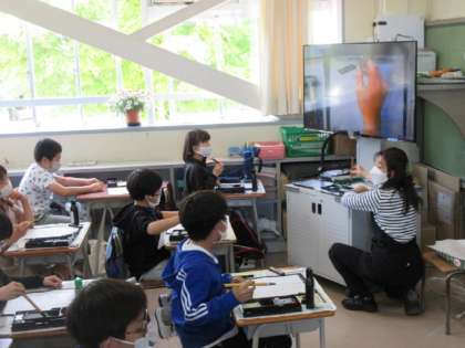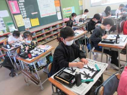 4年生になって初めての毛筆の学習です。3,4年生の書写は専科の先生が授業をします。