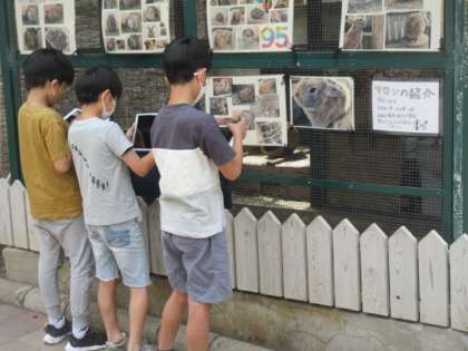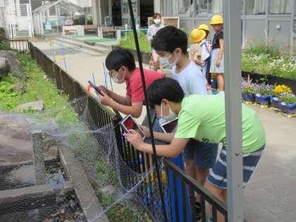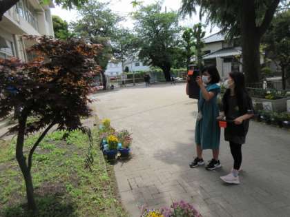 校庭で草花や生き物の動画を撮っています。この動画は説明文の「アップとルーズ」の学習で活用するそうです。