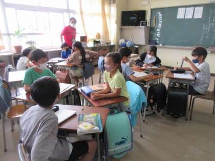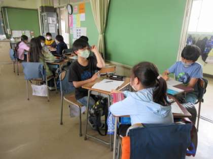 友だちのことをもっとよく知るにはどうように相手から聞き出したらいいのか。今日は3人組になり、質問をする、質問に答える、記録するの3つの役割を交代で経験していました。