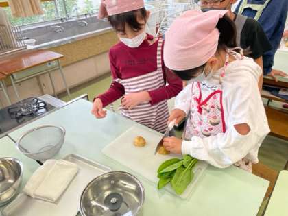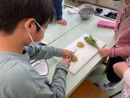 おいしい楽しい調理の力。ジャガイモを包丁で切ります。
