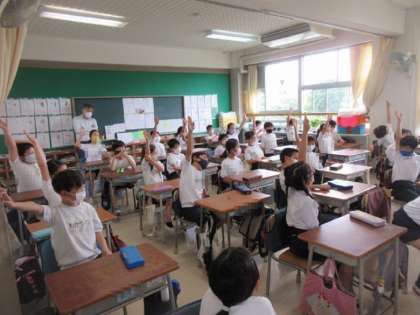 考えて行動することの大切さを自分の経験を織り交ぜながらみんなで考えていました。落ち着いて学習に取り組んでいます。