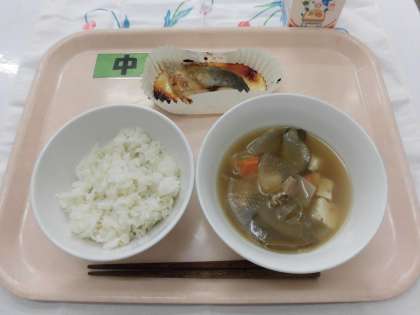 【献立】麦ごはん・魚のみそマヨネーズ焼き・けんちん汁・牛乳
