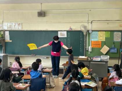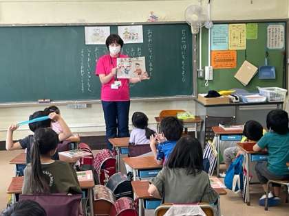 おせわになっているひと。日頃さまざまな場面でお世話になっている人がいることに気づき、感謝しようとする心情を育てることをねらいにしています。写真や役割演技なども取り入れました。