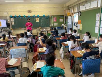 はなのみち。物語には場面というまとまりがあることを知り、くまさんになったつもりで、台詞をどのように音読したらよいかを考えました。