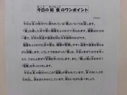 【献立】麦ごはん・さわらのみそ麹焼き・沢煮椀・牛乳