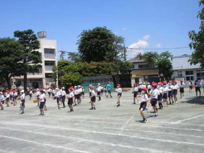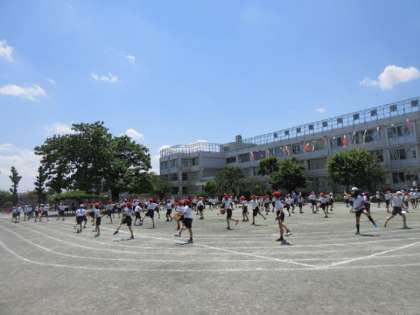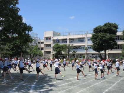 5年生の表現は「エイサー」。演技後半はクラスごとに異なる隊形移動に挑戦します。