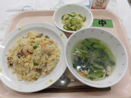【献立】チャーハン・とり肉と青菜のスープ・中華和え・牛乳