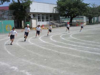 3年生はカーブのあるコースは初めての経験です。本番に向けて80m走の練習をしました。