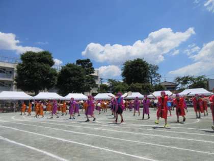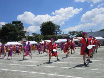 5年生は心にしみる曲に載せてエイサーを演じました。