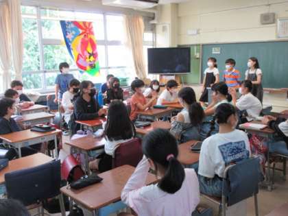 2つのチームに分かれ、ディベートのような討論をしていました。学級の雰囲気がよく、みな楽しそうです。