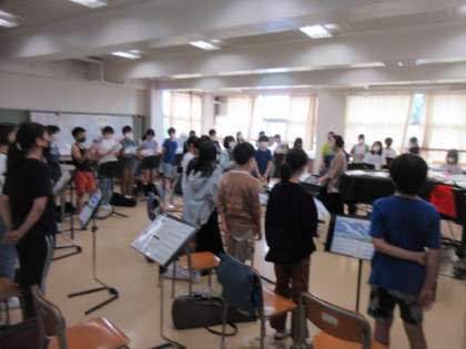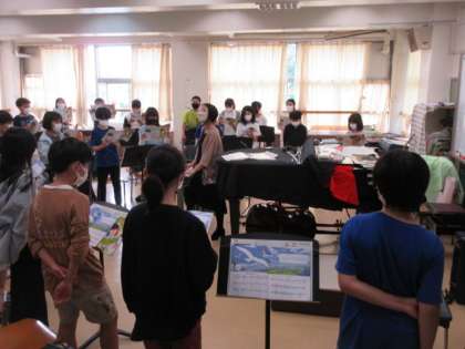 今の教科書には「つばさをください」の曲が乗っています。2つのパートの分かれた合唱の練習をしています。聞いていて心地よい歌声です。