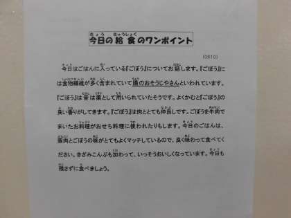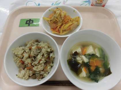 【献立】豚肉とごぼうのごはん・すまし汁・かき揚げ・牛乳