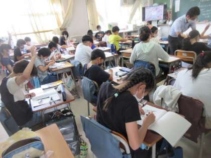 合同な四角形の描き方の学習です。同じ内容ですがクラスによって先生のアプローチがそれぞれです。
