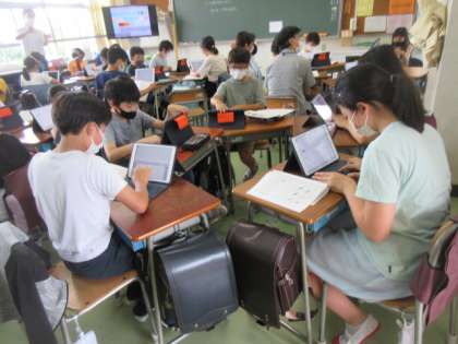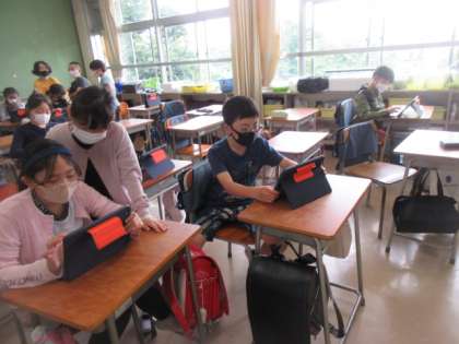 来週の川場移動教室に向けてタブレットを使って事前の調べ学習をしています。子どもたちは楽しそうです。