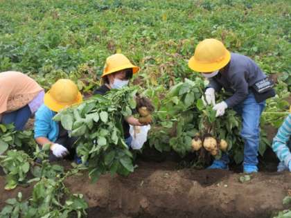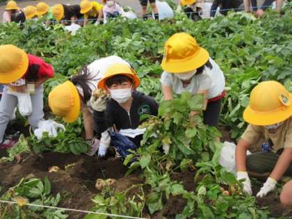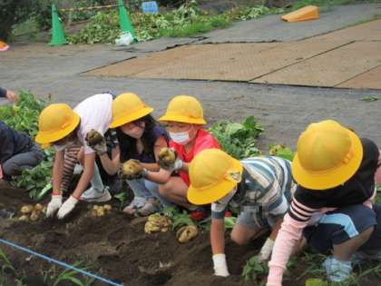 茎を抜き、土を掘るとたくさんのじゃがいもが出てきました。子どもたちは大喜びです。収穫体験は世田谷の子どもたちには貴重な経験です。