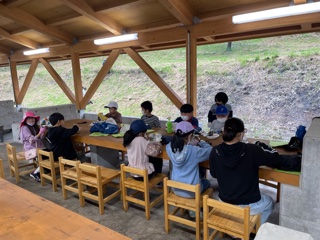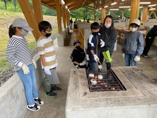 薪に火をつけ、やきいもをしました。ほくほくのおいしいやきいもにみんな笑顔になりました。