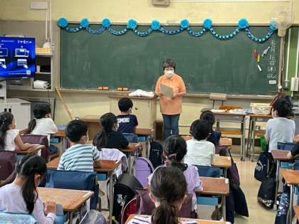 学校探検。今日は給食について、事前に出した質問に、栄養士のMさんが答えてくれました。