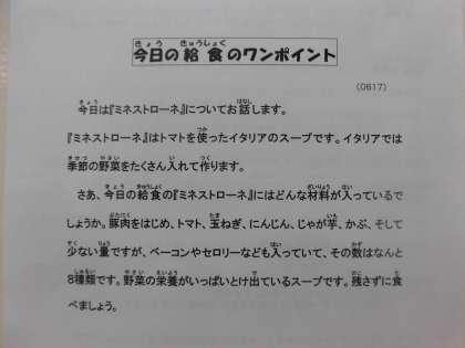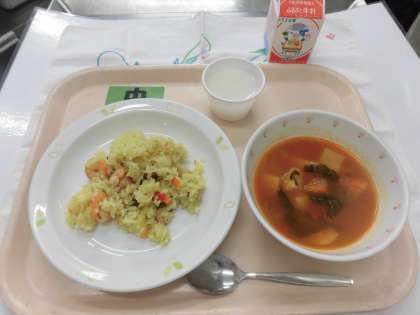 【献立】パエリア・ミネストローネ・ホワイトゼリー・牛乳