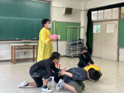 今日は、怪盗タナバータが盗んだ短冊を取り戻すために、各クラスが暗号を解くというゲームでした。集会委員会の名演技はなかなかでした。