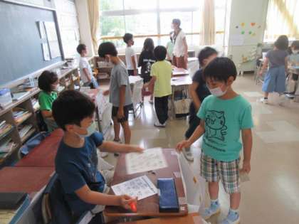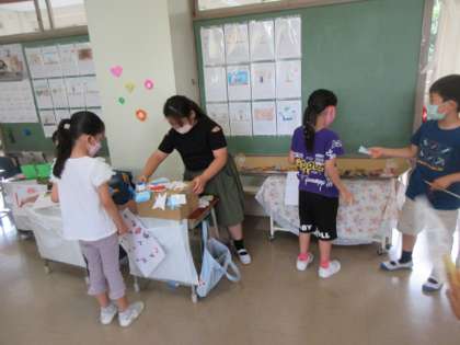 1学期もあとわずか。2年生がクラスイベントで夏まつりをしていました。楽しいお店が並んでいました。