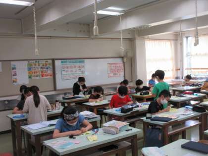 基本的な裁縫の実技学習。子どもたちは集中して、ていねいに作業をしていました。