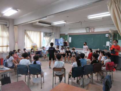 たてわり班活動なかよしタイムの2回目。6年生が班遊びのリーダーとしてよく頑張っています。