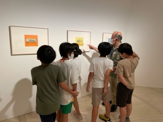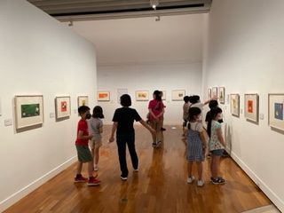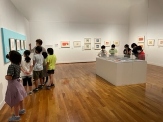 わかやまけんさんの作品を鑑賞しています。美術館ならではの空気を体感しています。