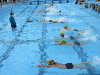 3年生が最後の水泳の学習で練習に取り組んでいました。